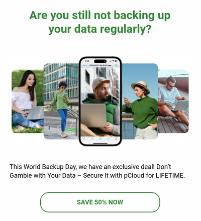 Secure your files forever with pCloud’s exclusive World Backup Day deal! Get over 50% off on lifetim...